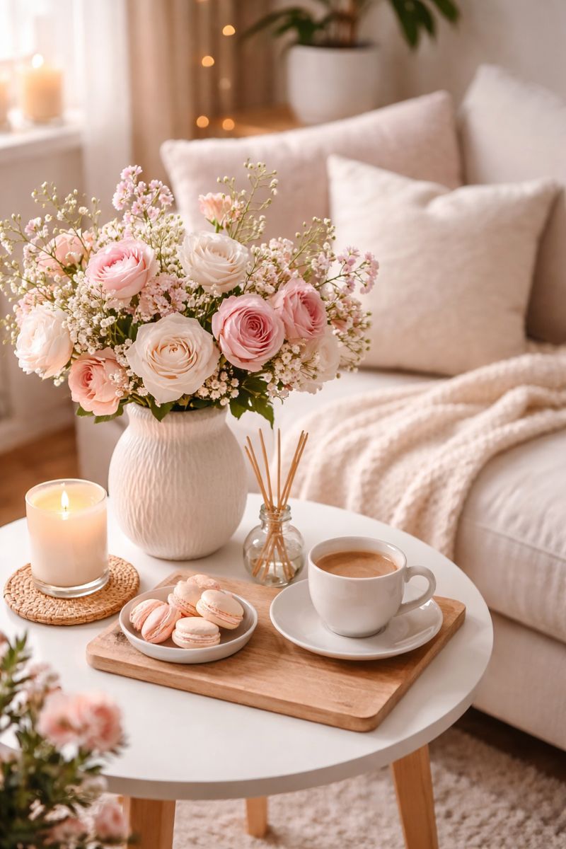 Fresh flowers, soft scents, and natural textures instantly make your home feel calm and cared for. Even the smallest touch of nature can completely change the mood of a space.